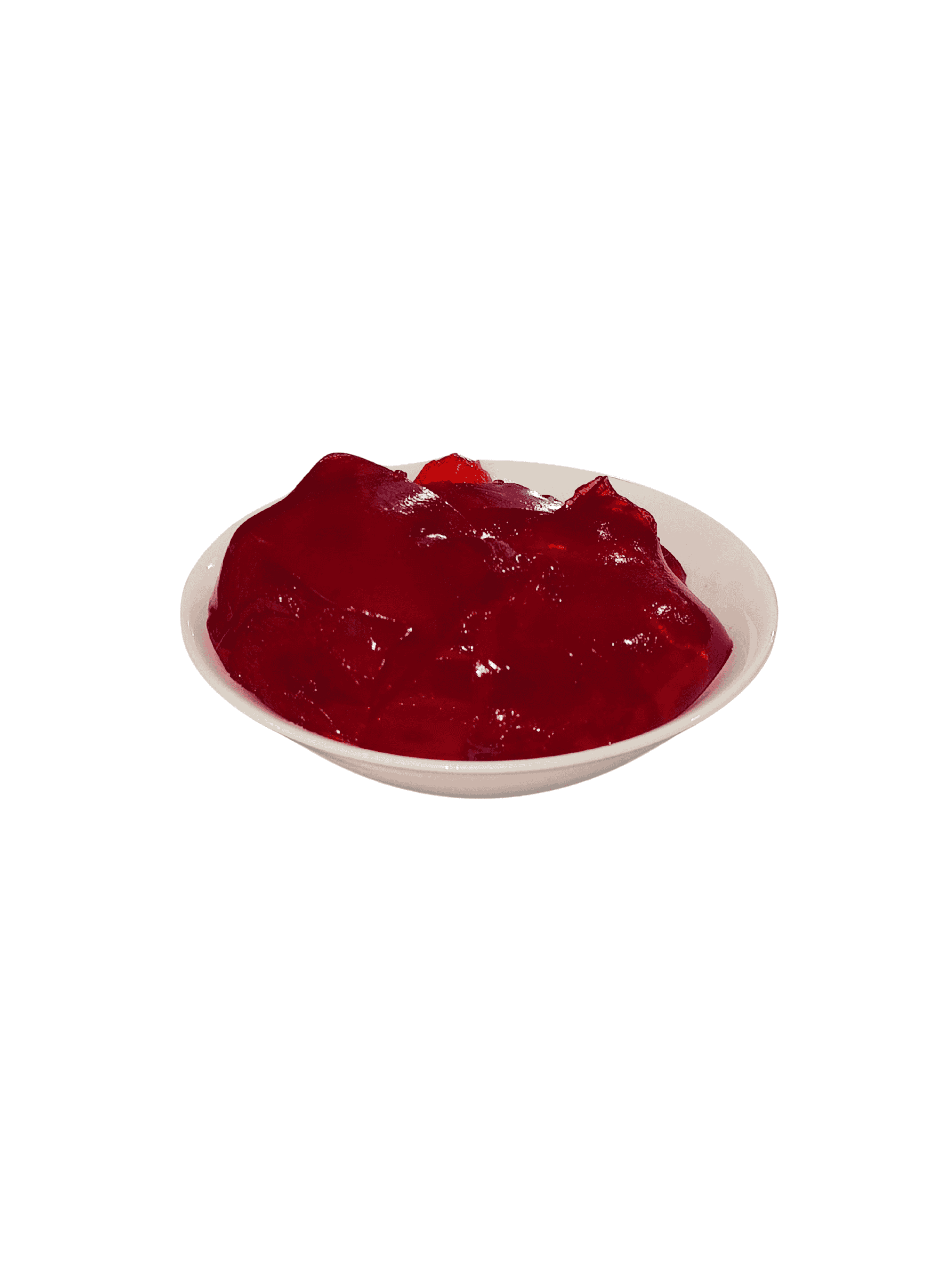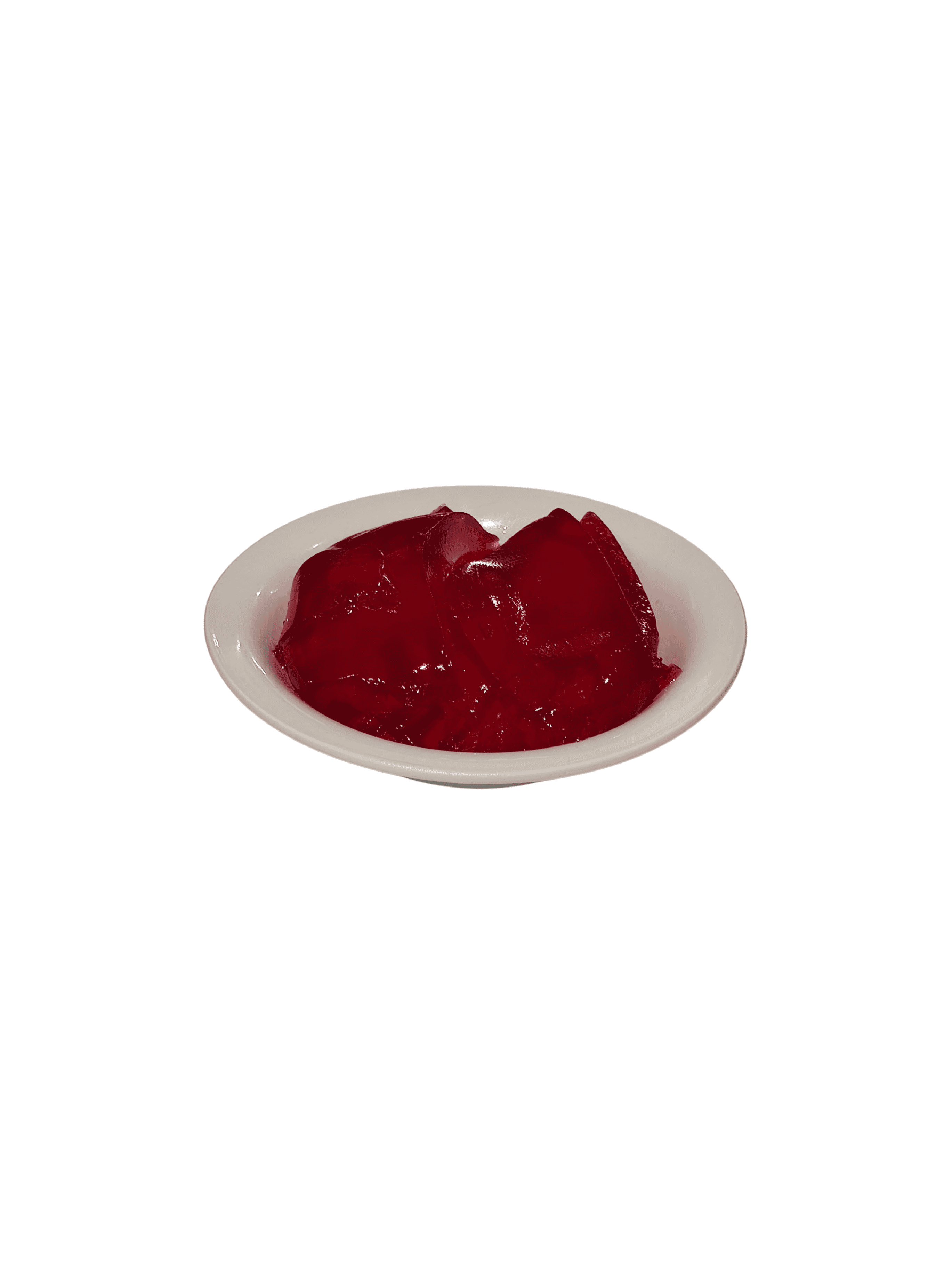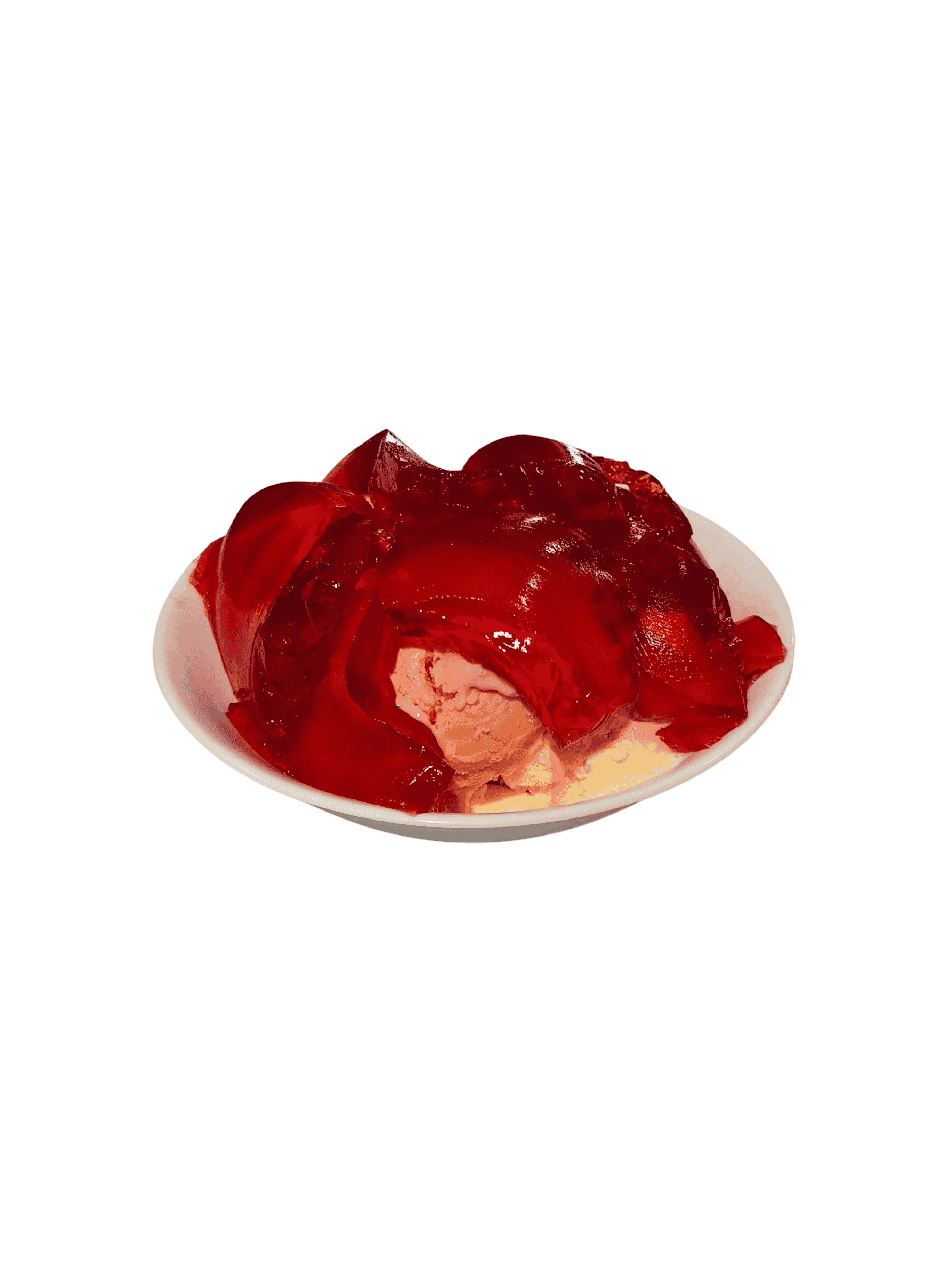 Gelatina, Helado De Vainilla y Fresa, Melocotón y Fresas