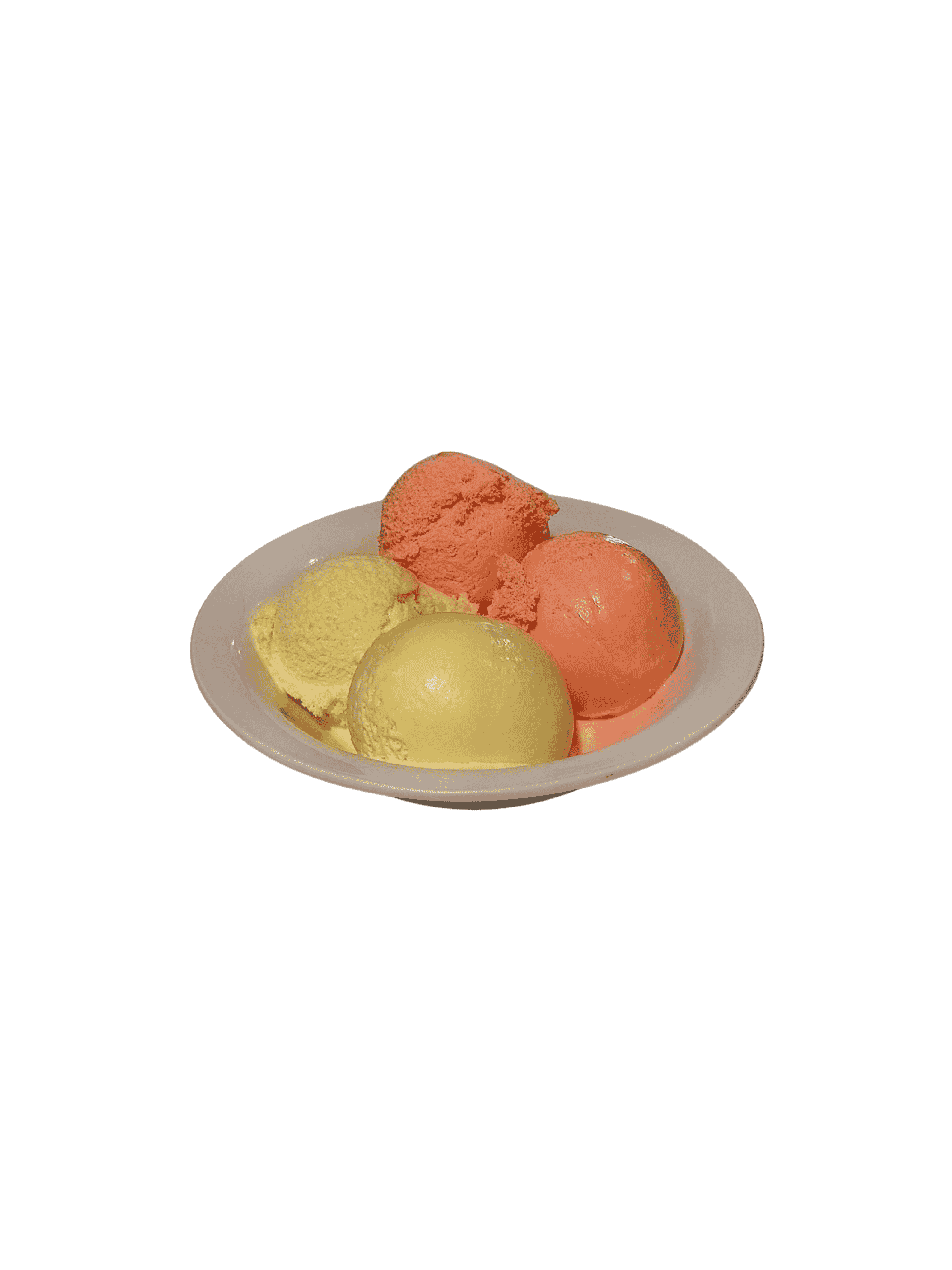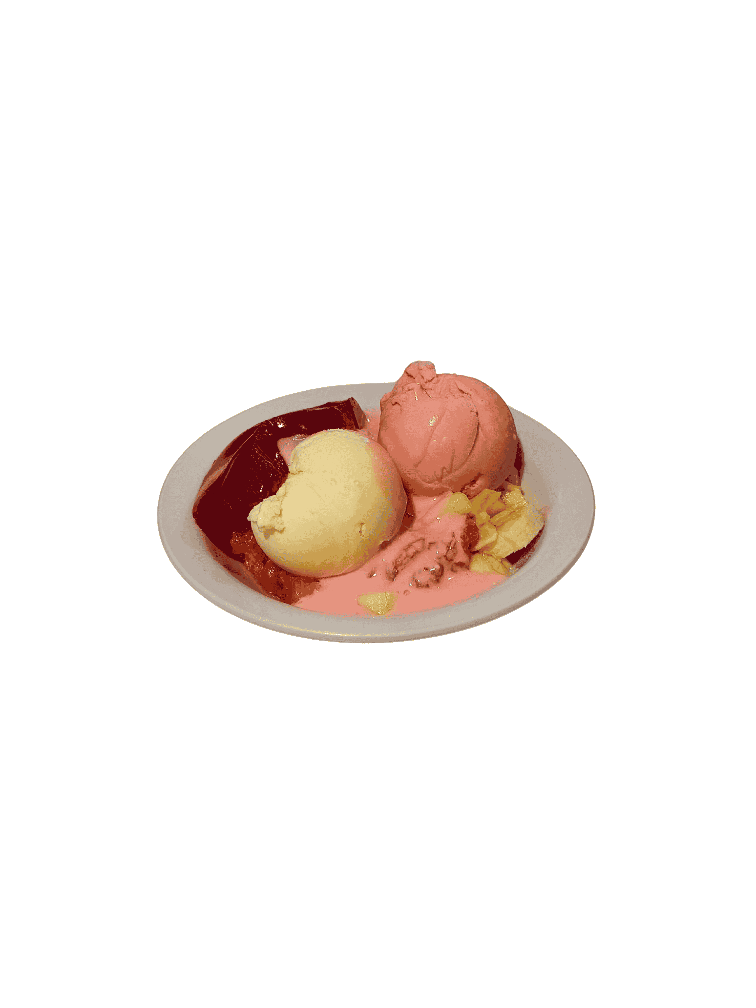 Papaya, Piña, Banano, Fresas, Melocotón, Gelatina, Helado De Vainilla y Fresa