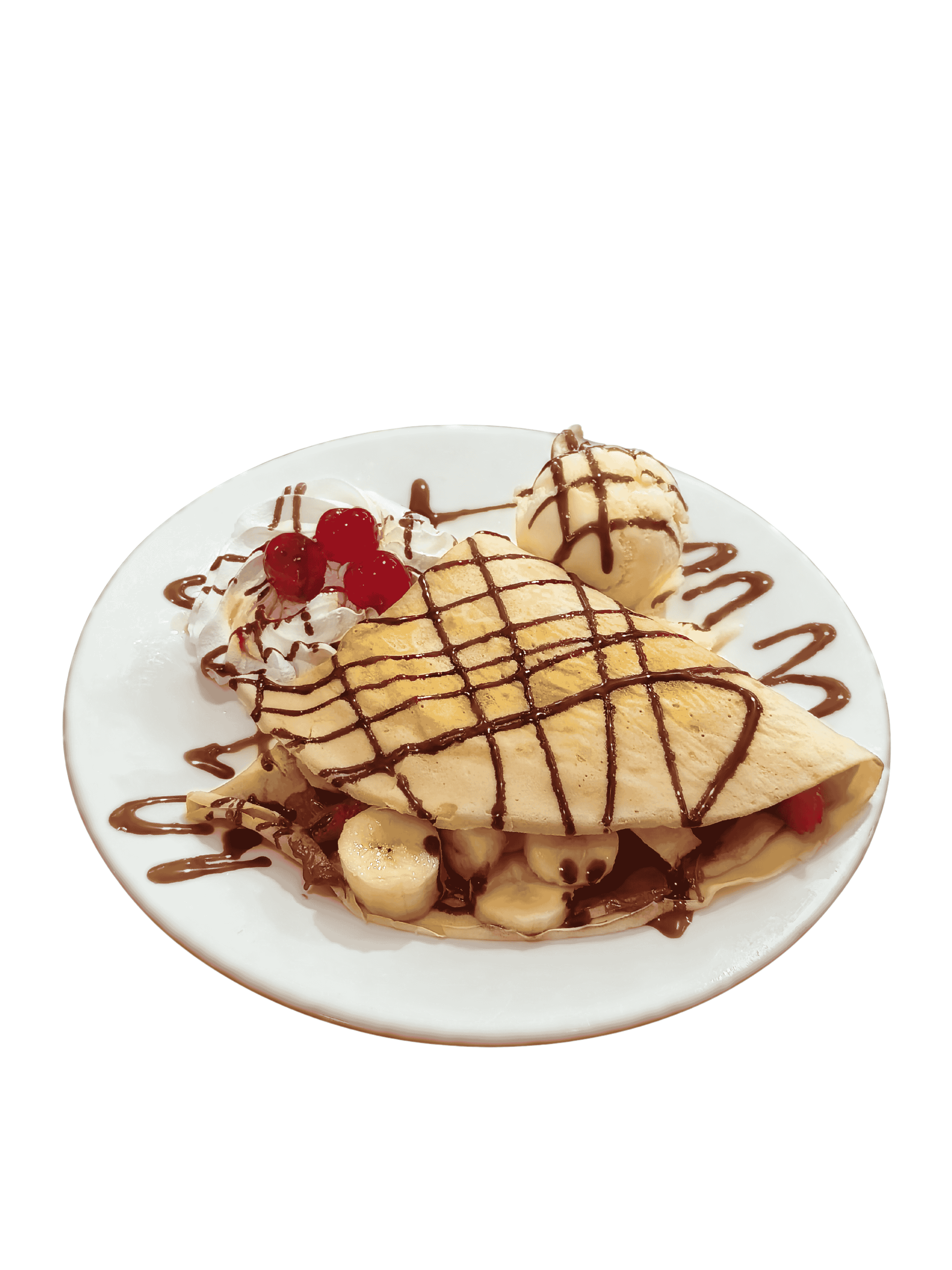 Nutella, Fresas, Banano, Topping de Chocolate o Caramelo, Helado de Vainilla, Chantilly y Cerezas